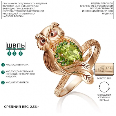 первая страница > Ювелирные изделия > PLATINA Кольцо "Сова" из красного золота 585 пробы c хризолитом, цитринами, хромдиопсидами